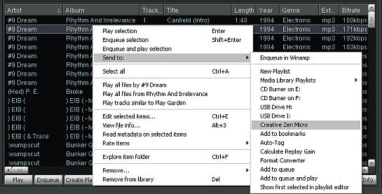 The above example screenshot shows the management of a Creative Zen Micro player.